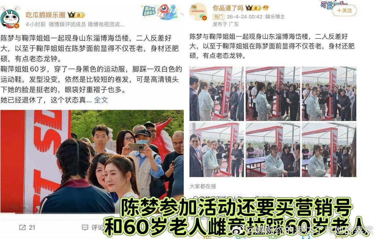孙颖莎让女主持人穿羽绒服的美谈没两天就大爆出圈一次,陈梦买通稿和60岁老艺术家女