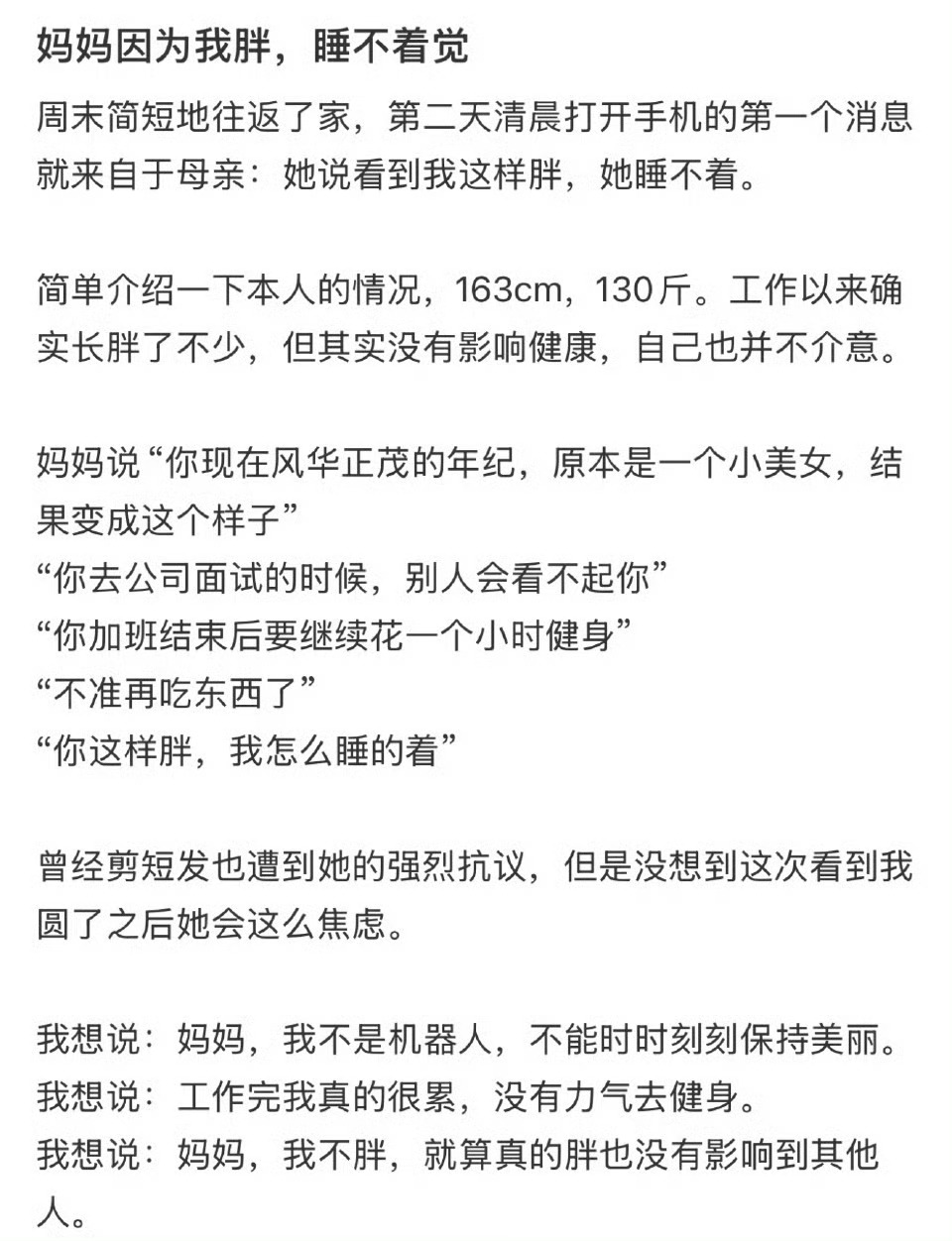 妈妈因为我胖睡不着觉