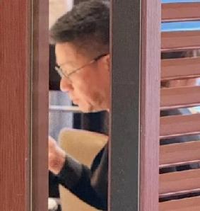 许雅钧戴了一副眼镜,穿了黑色的衬衫,从侧面看他咀嚼的时候,下巴上的褶子好多,有点老了,毕竟56岁了。