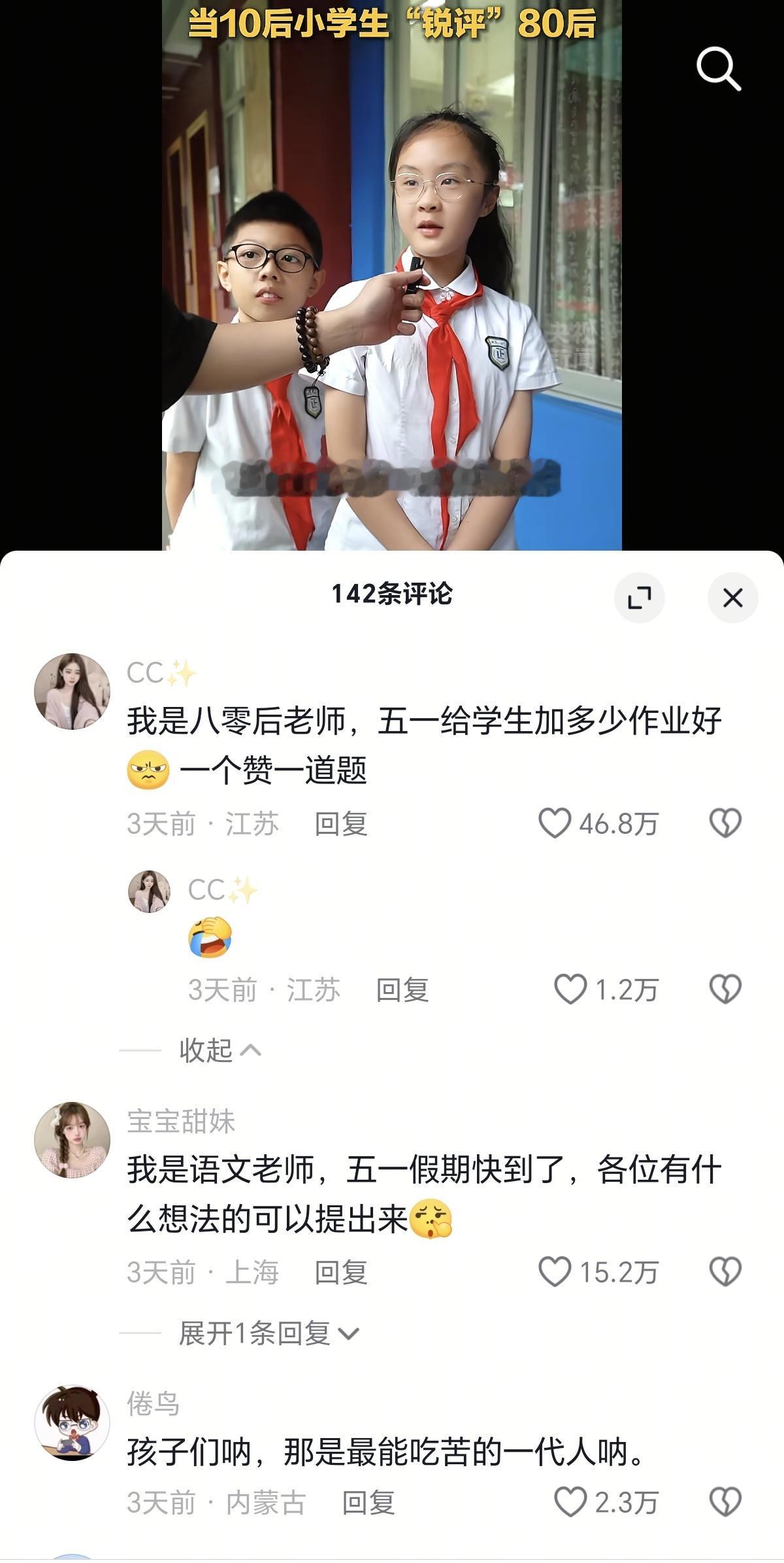 小朋友说80后封建,80后老师获赞46万,因为一赞一道题,确实够封建的