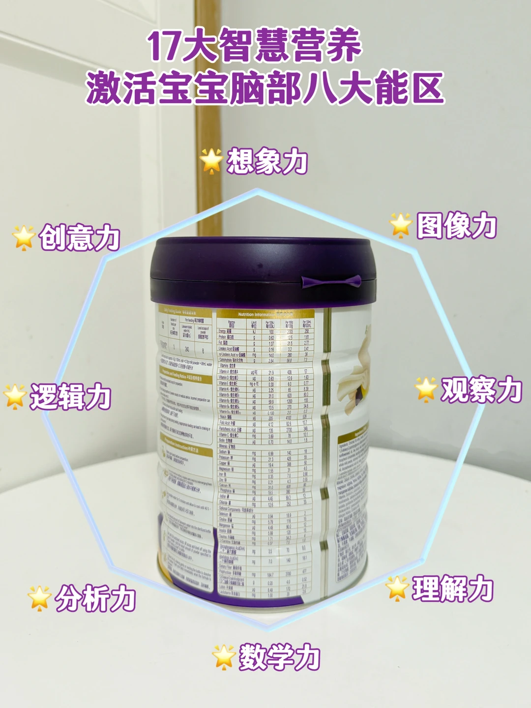 另外在吸收方面也表现的很优秀,高含量乳清蛋白:70%60%60%,均高于国标标准,还添加了OPO结构脂,三段奶粉含量更是高达4g/100g,促进钙和脂肪的吸收!再搭配双益生元+益生菌,维持宝宝肚肚稳定