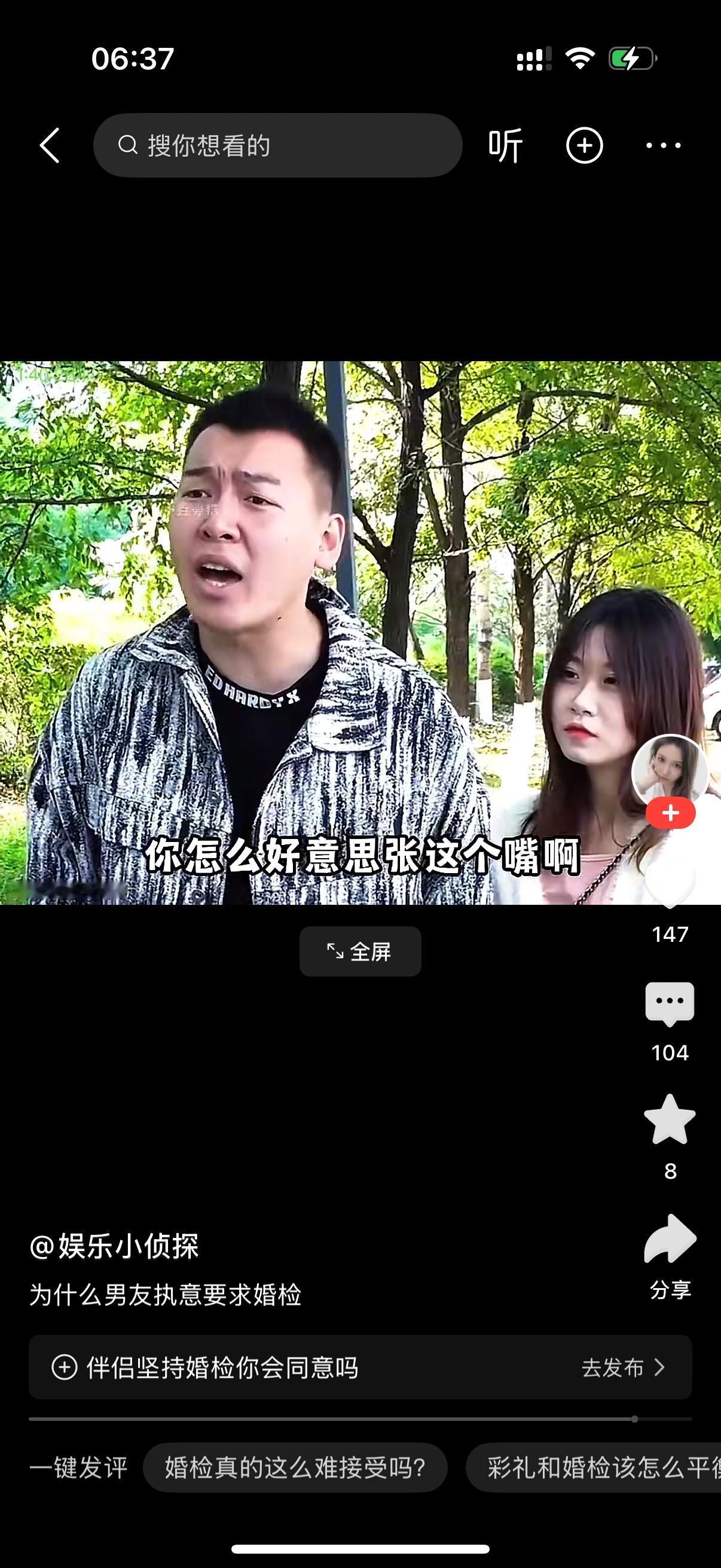 女人找到男人说,你这个婚检我接受不了。男人问,为什么接受不了?这是对双方负责啊。女人大喊,我不管,反正我不做。你们要我做这个,对我是一种侮辱。男人说,不做就不结婚。女人说,那你给我拿10万块钱精神损失费。男人怒斥,这些年你吃我的喝我的,我没要你还钱就算了,你还问我要精神损失费?我看你神经确实有点错乱,去治治吧。女人脸都绿了。