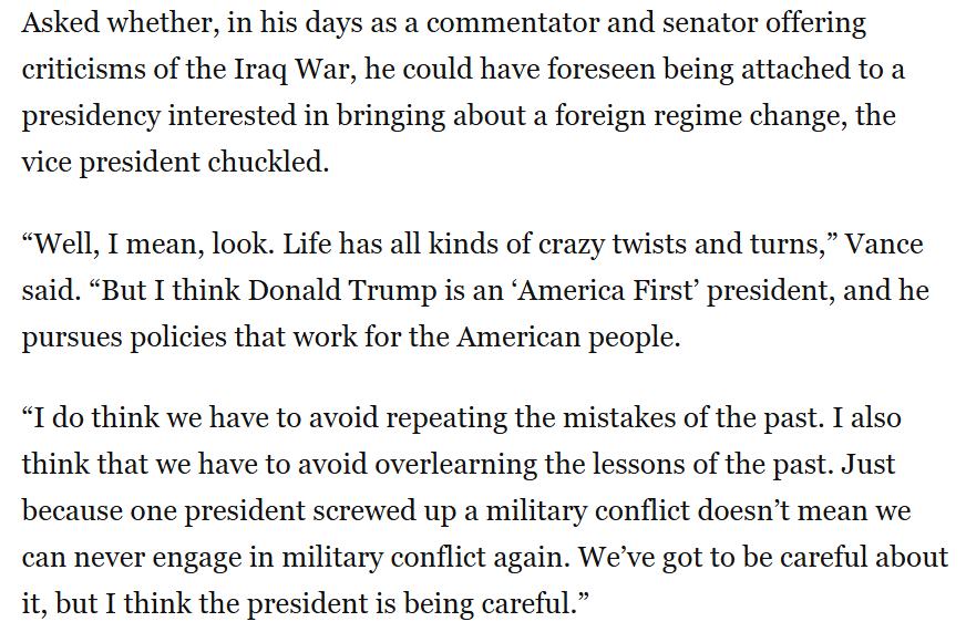 ——副总统万斯,2026年2月27日特朗普发动美以伊战争前一天接受采访时的发言