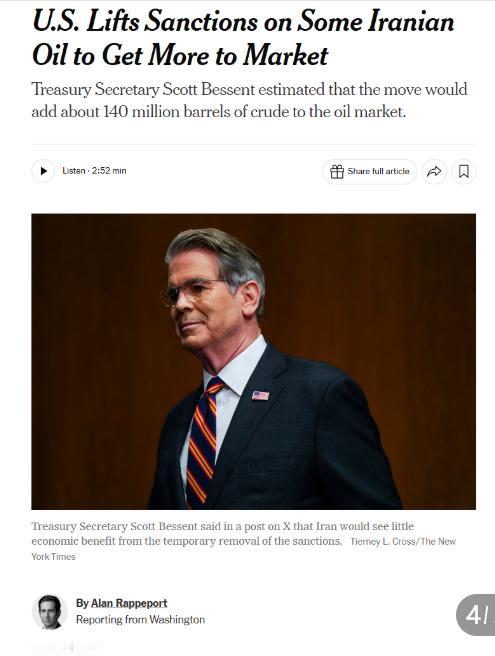 已经说不清是贝森特的第几次180度转弯了(《“我们美国解除伊油俄油制裁的做法,削弱了伊朗封锁霍尔木兹海峡的筹码”》)。伊朗以美国违反协议的理由再次封锁霍尔木兹海峡,美伊第二轮谈判的形势急转直下,贝森特参加了特朗普召开的紧急会议(《谁的油轮通过了伊朗美国双封锁》),接着财政部又双叒叕自打嘴巴。特朗普2.0政府反复的朝令夕改,体现的是其进退失据的慌乱。