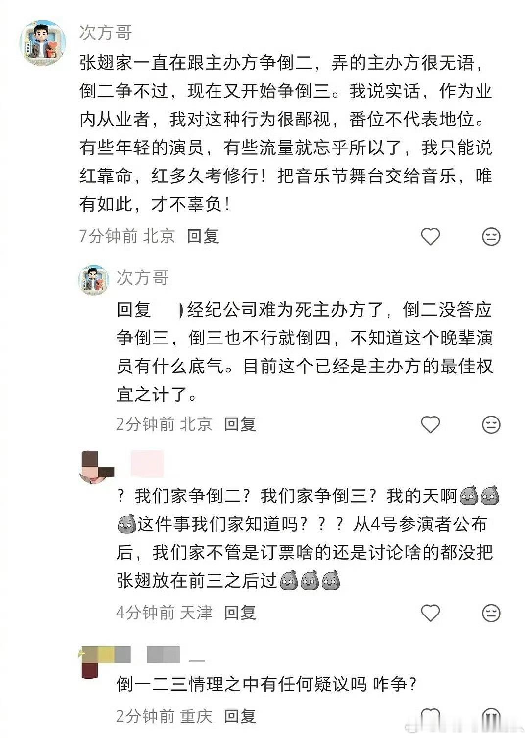 张翅是谁啊?太湖湾音乐节的工作人员说他在音乐节上争出场番位,倒二没答应争倒三,倒三不行就倒四,非要晚场,