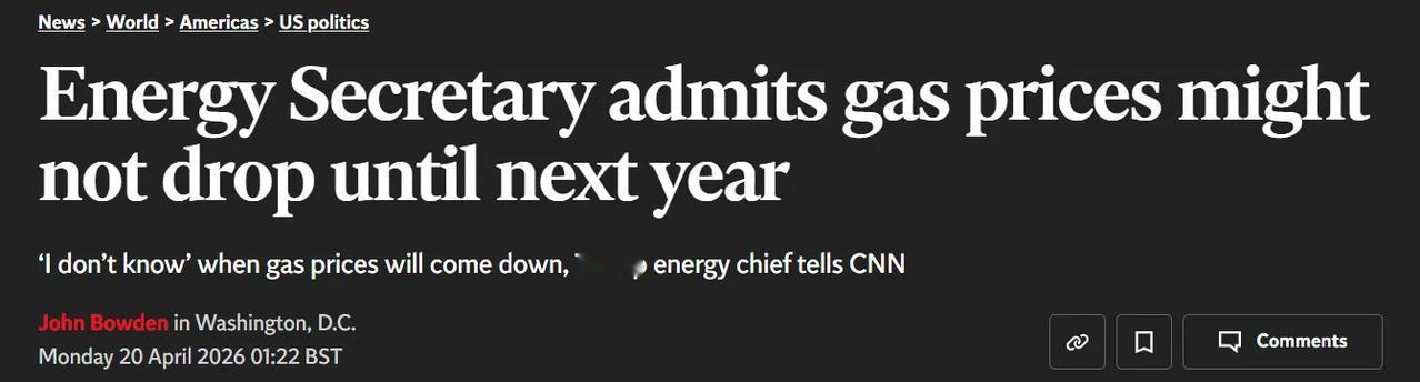 ——美国能源部长Chris Wright,2026年4月19号FOX采访中的讲话