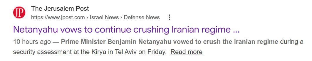 F-15被击落的消息和A-10被击落的消息之间,以色列内塔尼亚胡发表讲话表示“攻击继续”。