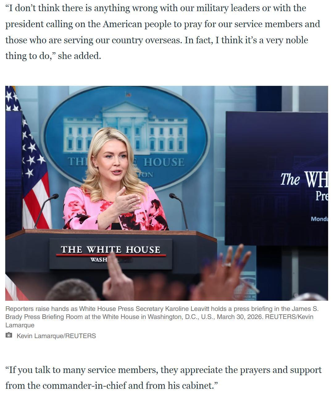 ——白宫新闻发言人Karoline Leavitt,2026年3月30号白宫记者会上的评论