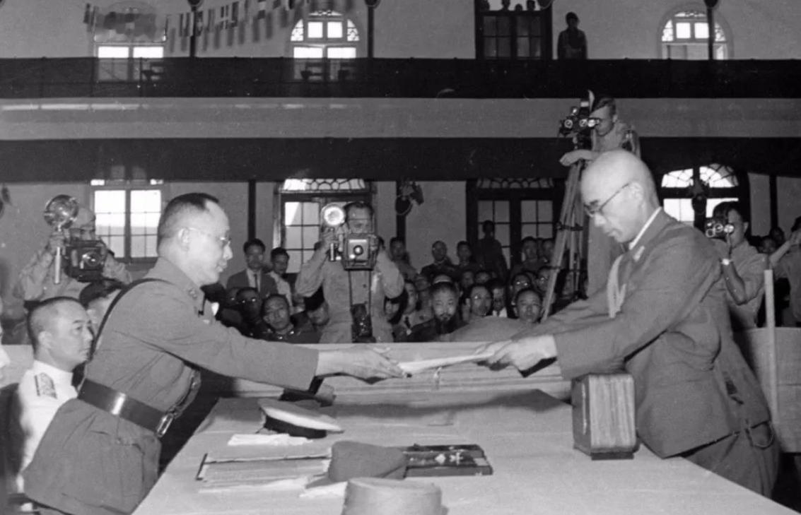 1945年抗战胜利,本是何应钦洗刷耻辱的最好机会,9月9日他作为中国战区受降主官,在南京接受冈村宁次投降,可他偏偏在这个举国欢庆的时刻,再次犯下大错,受降时他作为战胜国代表,竟微笑起立、双手接过降书,姿态谦卑得让在场盟军都看不下去。