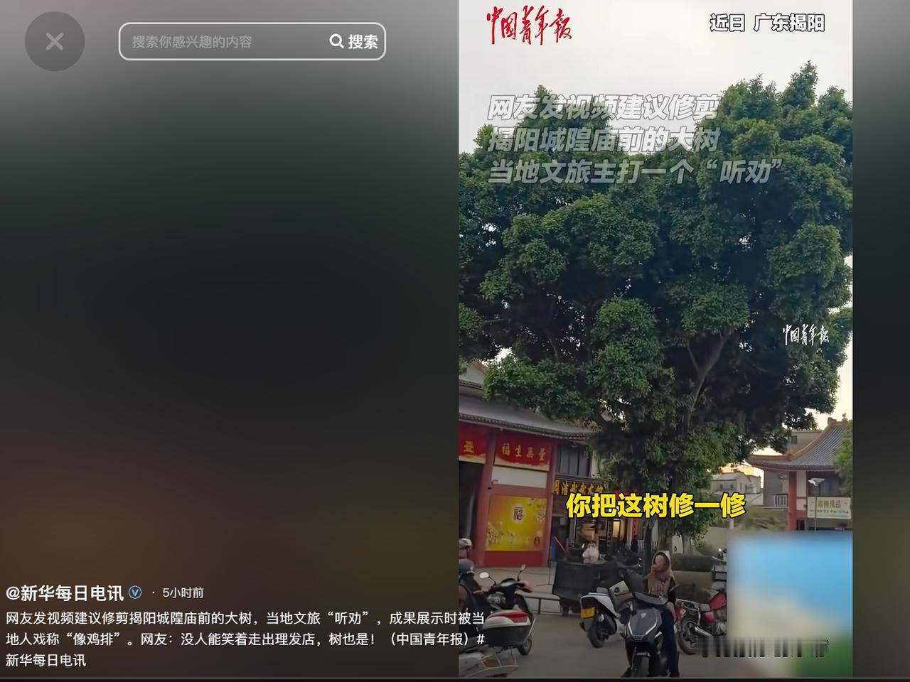 (信息来源:《网友发视频建议修剪大树,当地文旅主打一个“听劝”,结果......》杭州网)