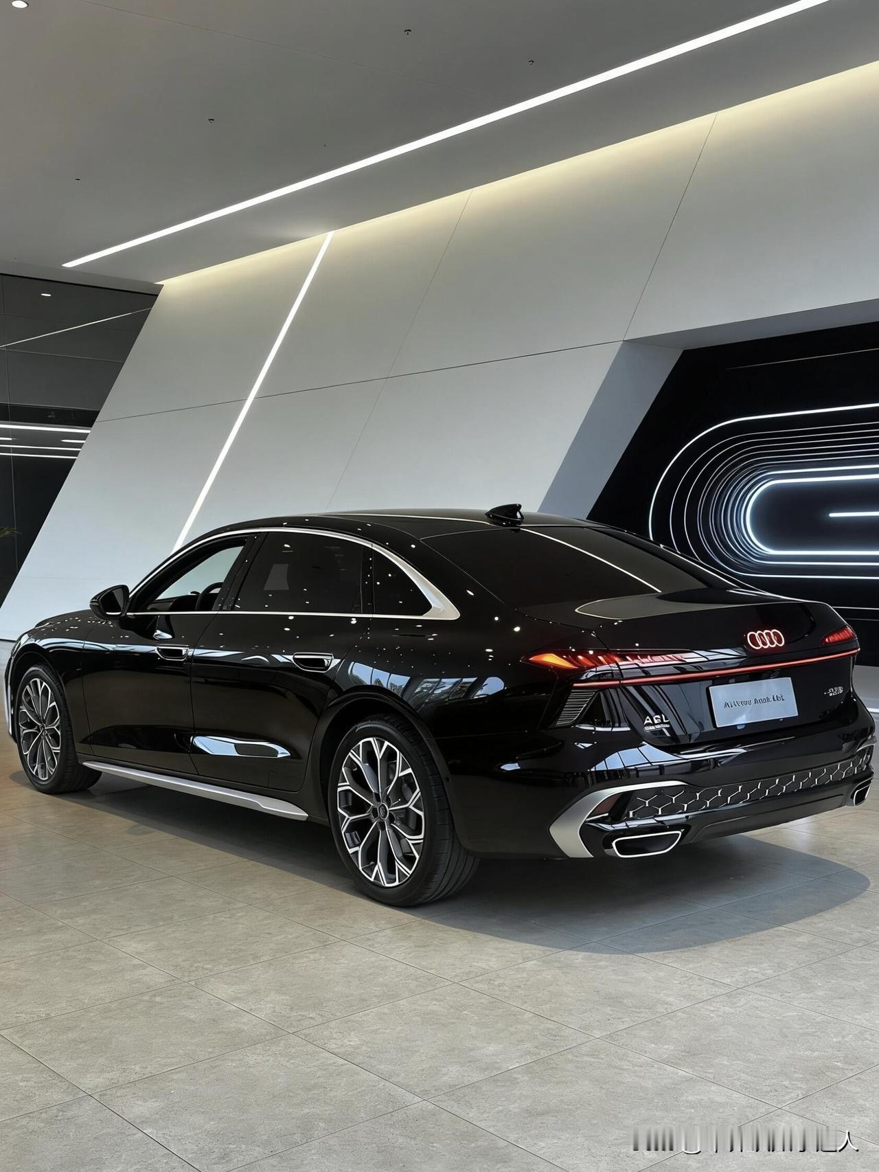 外观设计延续奥迪最新家族化语言,弱化传统商务感,强化优雅运动气质。前脸配备点阵式蜂窝中网与锐利LED矩阵大灯,可选S-line运动套件,提升视觉张力 。车身侧面线条修长流畅,长宽高为5142×1874×1464mm,轴距3066mm,较老款增加42mm,后排腿部空间进一步优化。车尾采用贯穿式镀铬饰条连接LED尾灯,双边共两出排气布局,风格沉稳大气;配色提供天云灰、月光蓝等多种选择,兼顾商务与家用审美 。