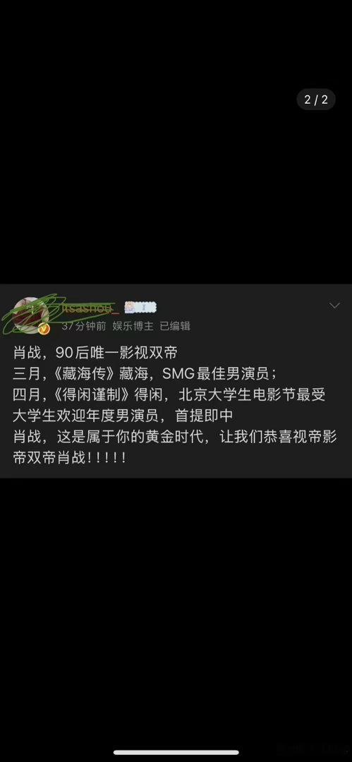 2026年才过了三分之一左右,肖战就已经大影节影帝+smg视帝影视帝双在手了,藏