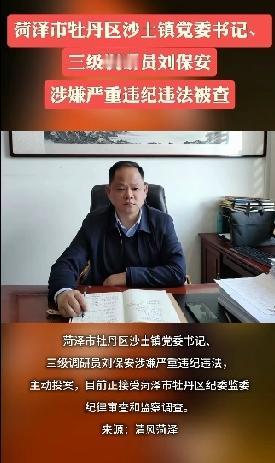 2026年4月最后一天下午2点37分“清风菏泽”发布重磅消息,菏泽市牡丹区沙土镇党委书记、三级调研员刘保安因涉嫌严重违纪违法,已于2026年4月30日主动投案,目前正接受牡丹区纪委监委纪律审查和监察调查。
