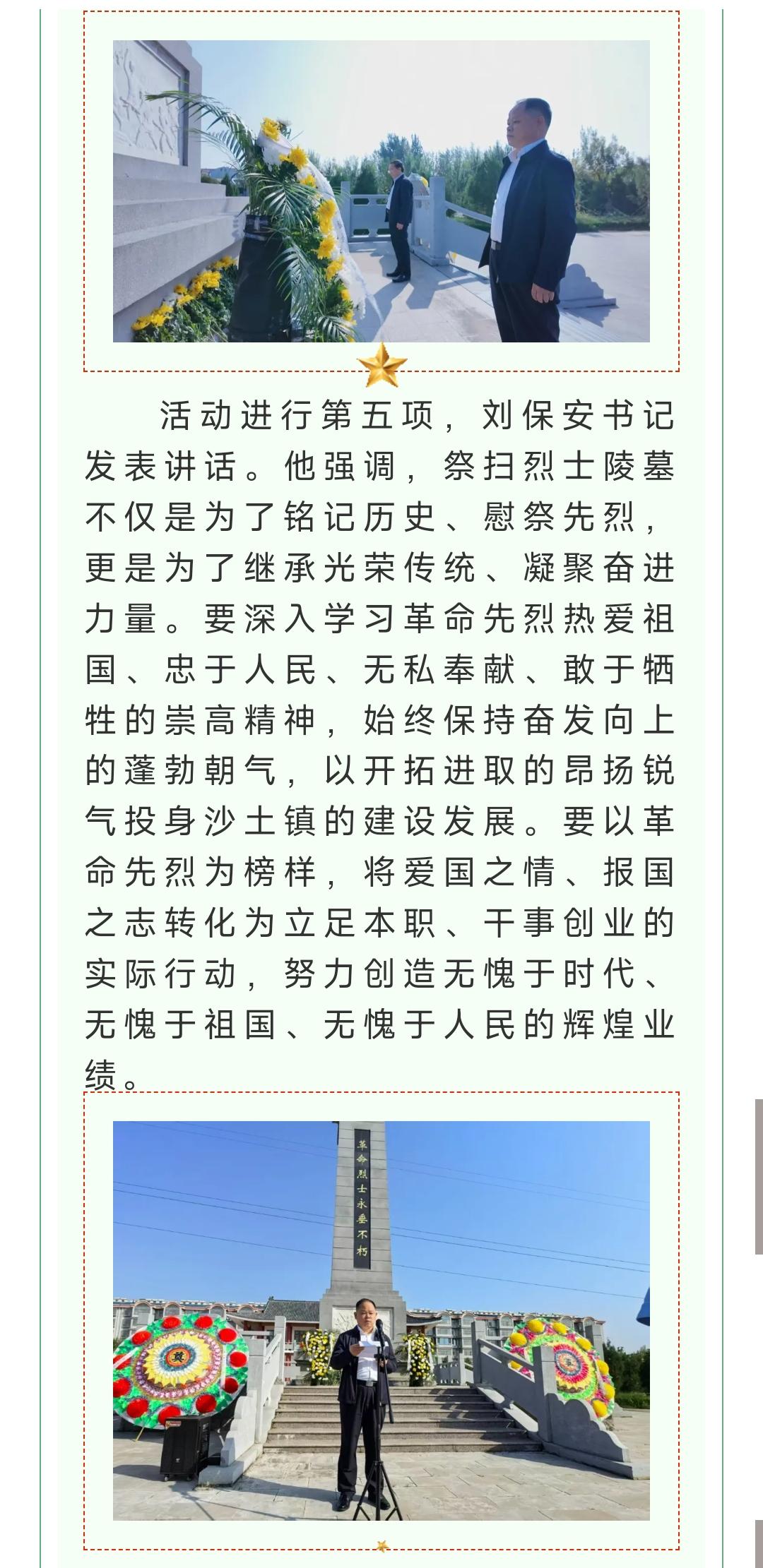 公开资料显示,2025年9月30日上午,牡丹区沙土镇在沙土烈士陵园庄严举行公祭活动。沙土镇党委书记刘保安、全体科级干部、沙土镇中小学师生代表等参加。“活动进行第五项,刘保安书记发表讲话。他强调,祭扫烈士陵墓不仅是为了铭记历史、慰祭先烈,更是为了继承光荣传统、凝聚奋进力量。要深入学习革命先烈热爱祖国、忠于人民、无私奉献、敢于牺牲的崇高精神,始终保持奋发向上的蓬勃朝气,以开拓进取的昂扬锐气投身沙土镇的建设发展。要以革命先烈为榜样,将爱国之情、报国之志转化为立足本职、干事创业的实际行动,努力创造无愧于时代、无愧于祖国、无愧于人民的辉煌业绩。”