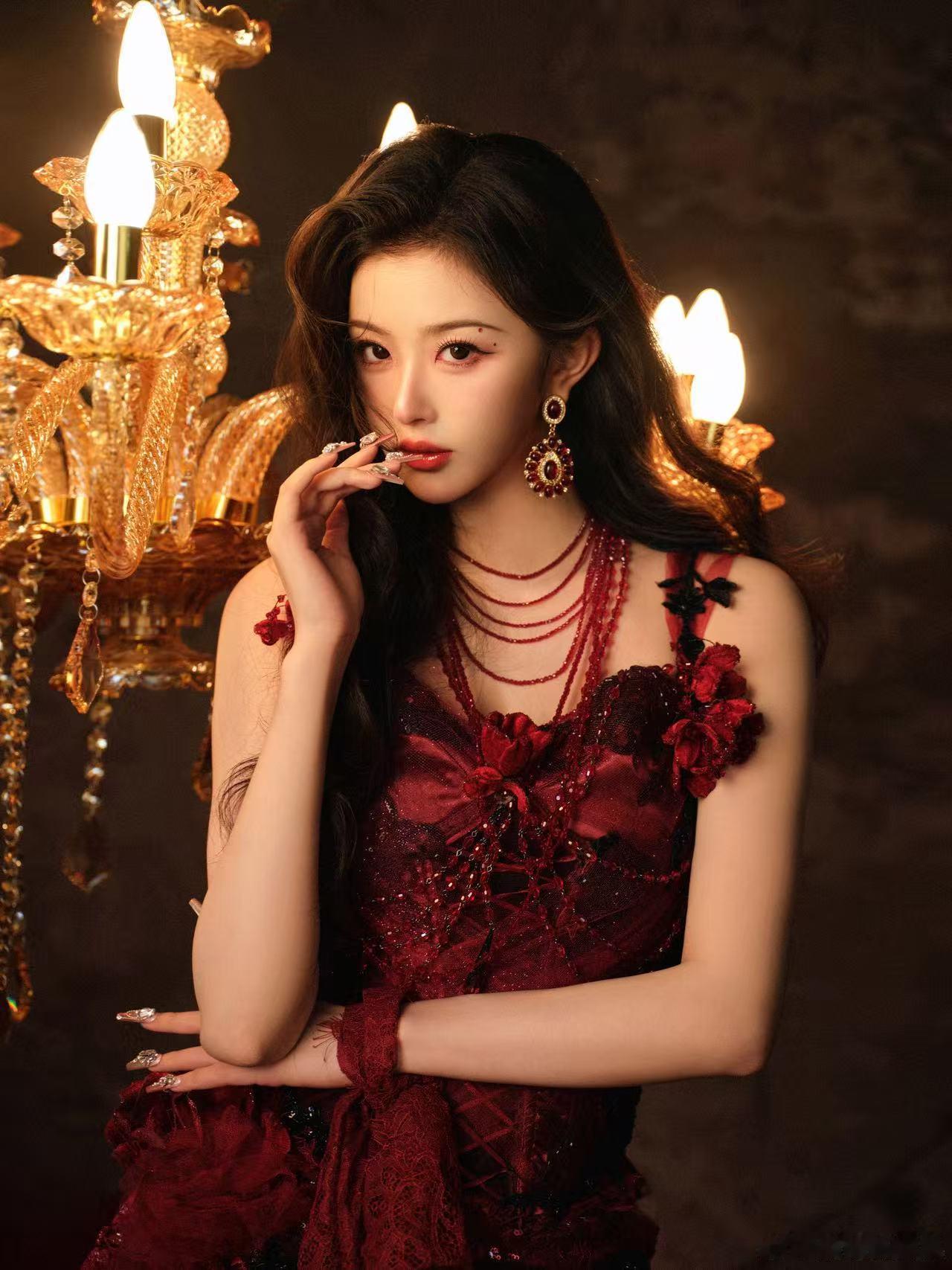 孔雪儿烈焰红裙孔雪儿美甲 红玫瑰一样的氛围感直接拉满,孔雪儿穿烈焰红裙优雅又撩人