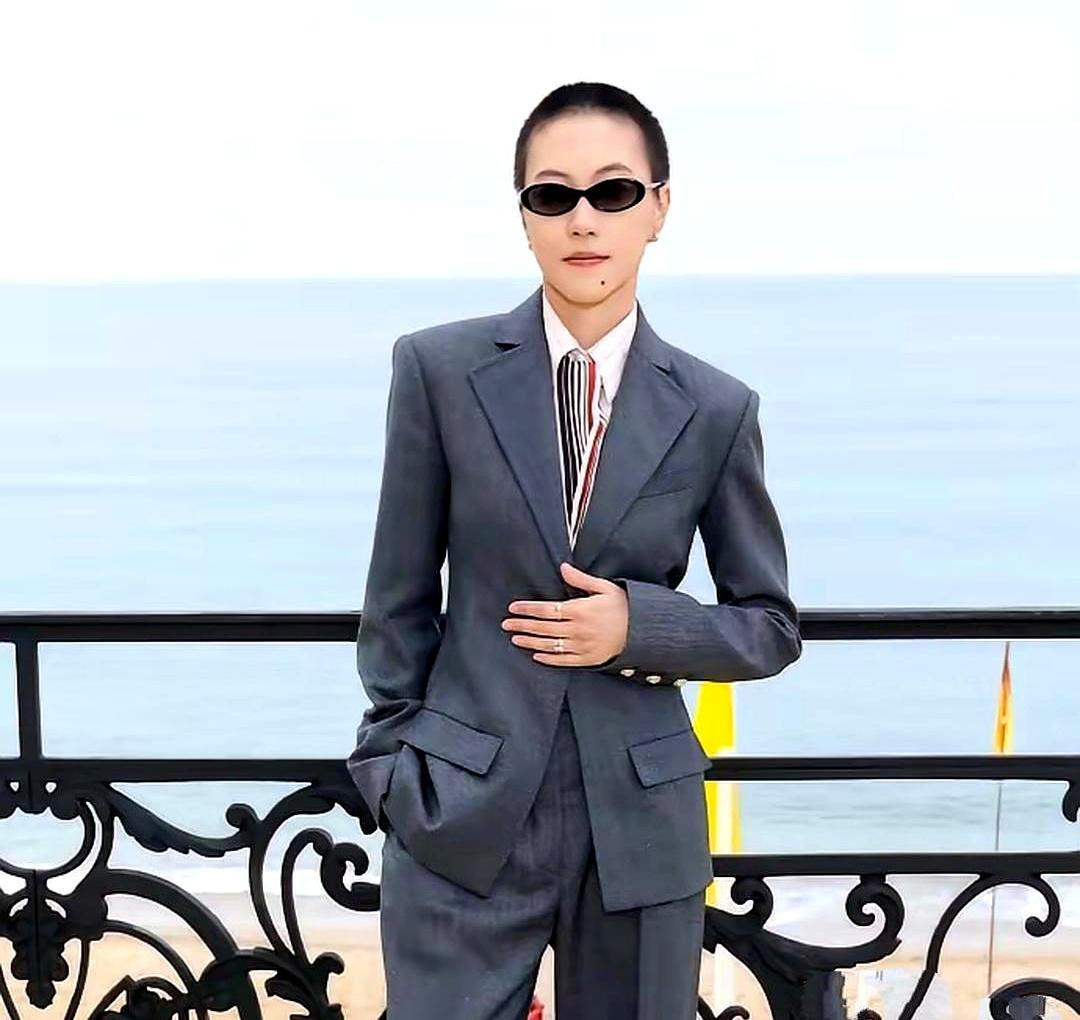说实话,她这寸头配上那副价值六千块的香奈儿小框墨镜,单手插兜那气场,简直比旁边真哥们儿还飒。