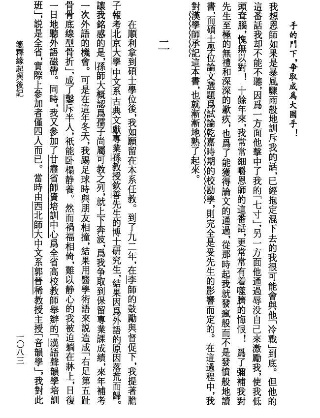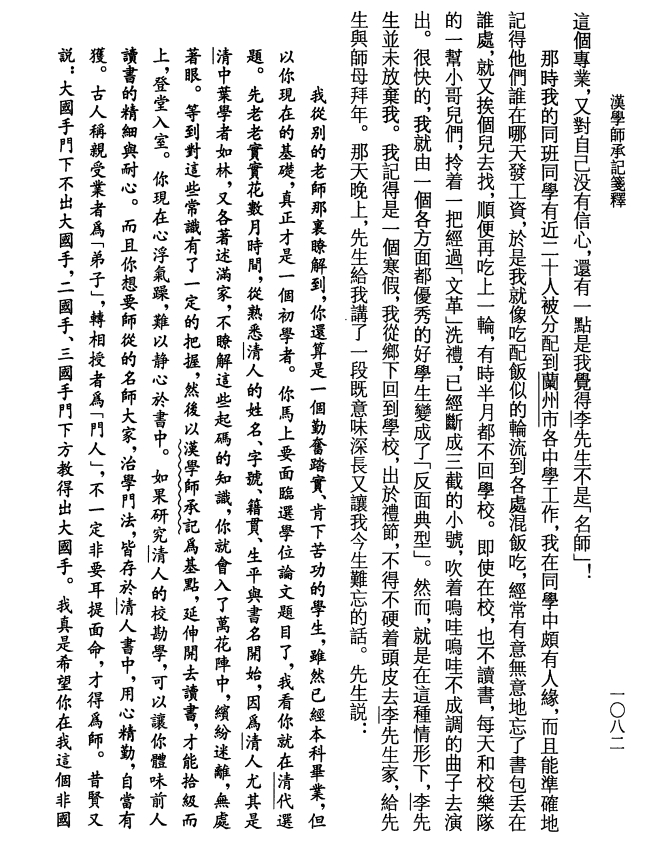 漆永祥的求学经历有点意思,本人压根不想搞文献学,硬是被好师傅带上了道
