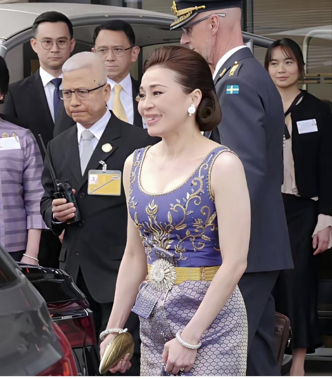 苏提达晚宴新造型太惊艳了!4月29日,苏提达王后跟随泰王出席瑞典王室非正式晚宴,