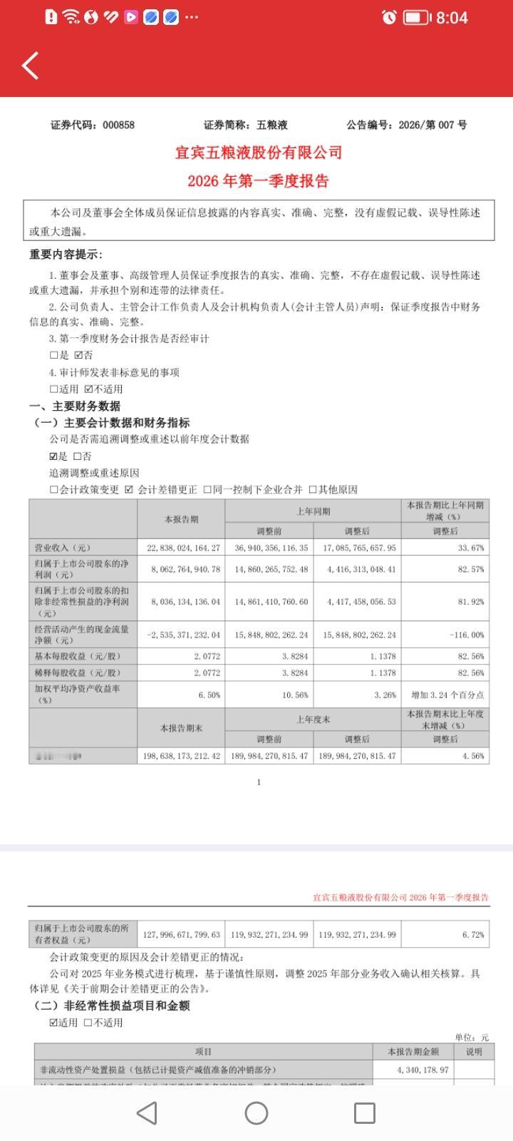 今晚披露的这份吊足大家胃口的年报和一季报把我也搞糊涂了!五粮液是算业绩暴雷还是算业绩爆表呢?