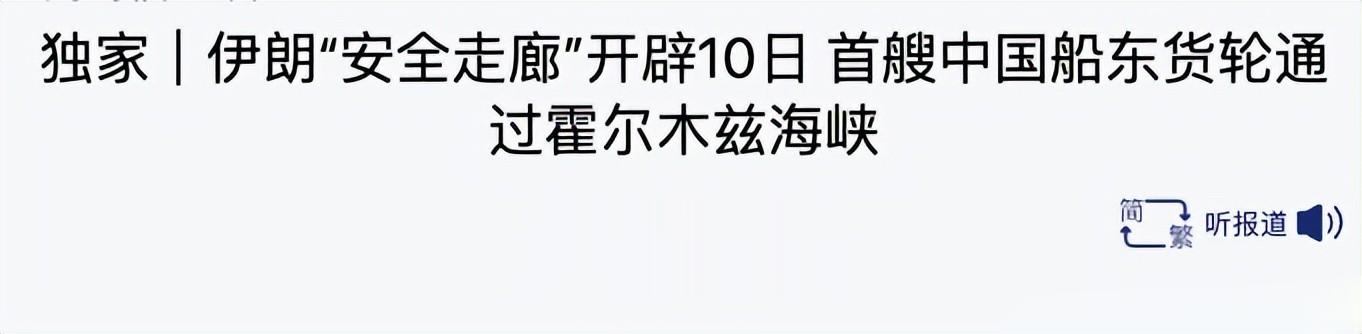 刚出的消息,首艘中国船东的货轮通过了霍尔木兹海峡的安全走廊。