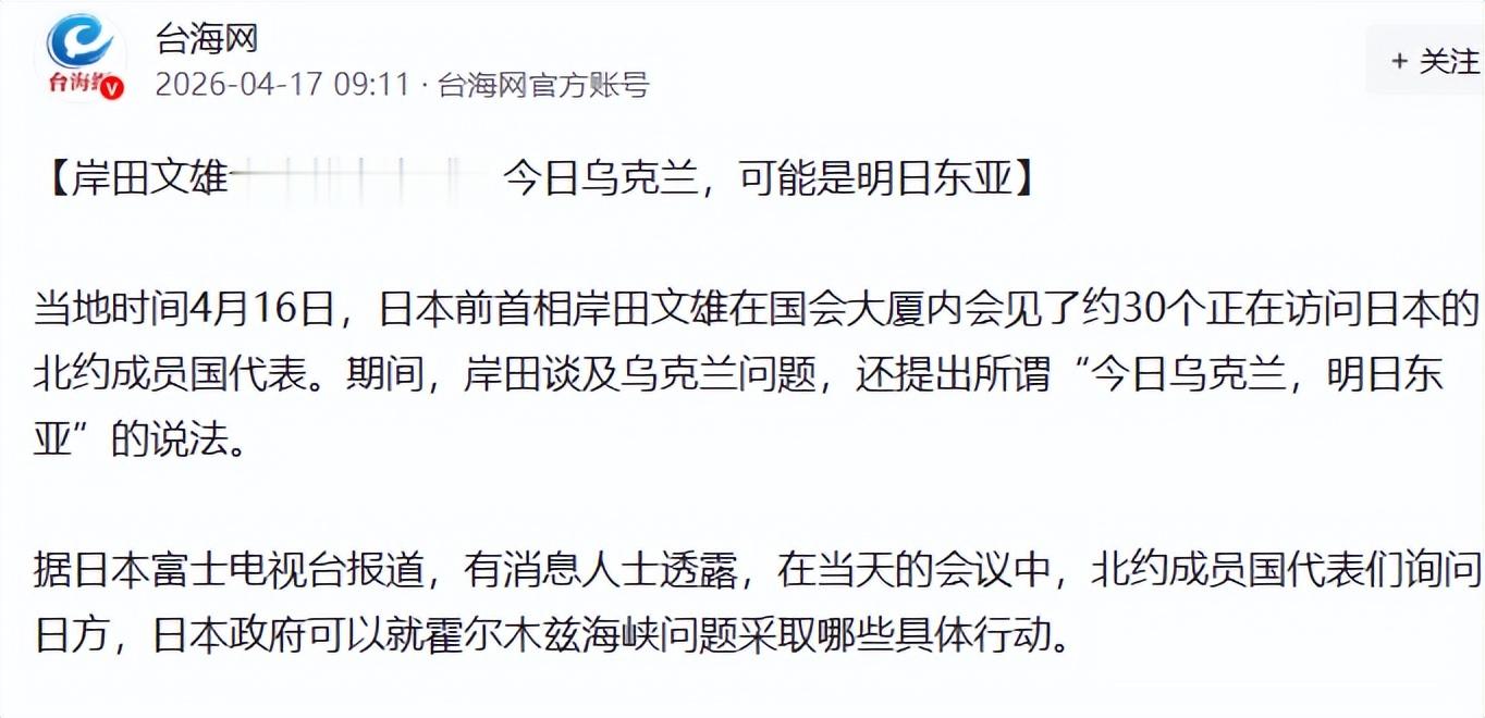 4月16日,岸田在北约多国大使眼前讲了句分量十足的话:“今日乌克兰,也许就是明日东亚。”他用乌克兰的痛苦现状来提醒大家,日本绝对不能步人后尘。