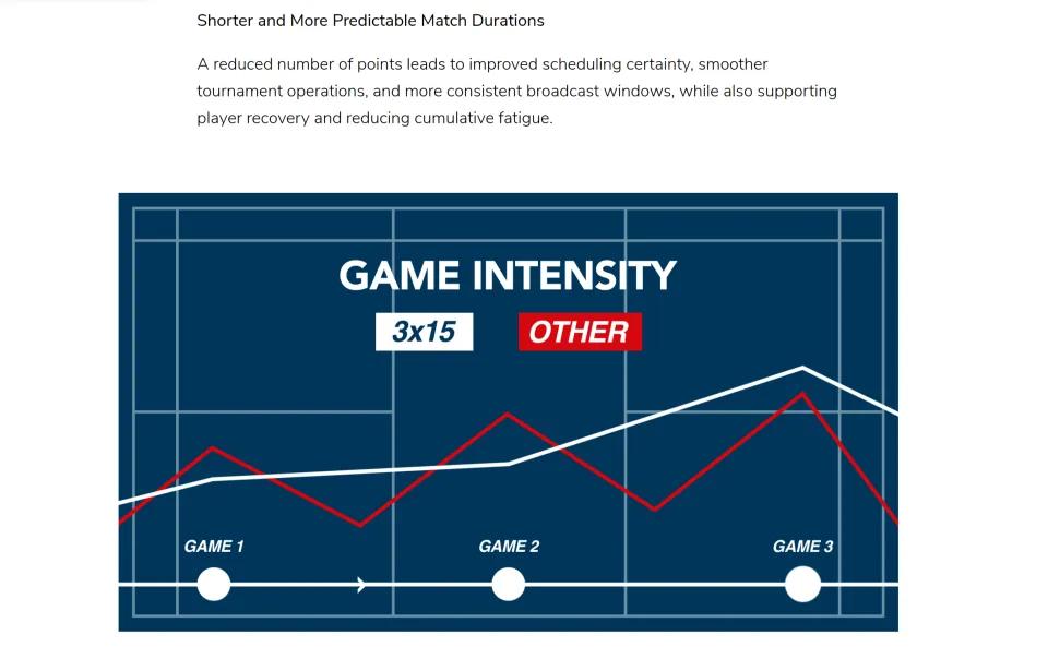 改成15分,比赛时间能压缩到30分钟左右,既保护了运动员,也适应了现在大家碎片化的观赛习惯。