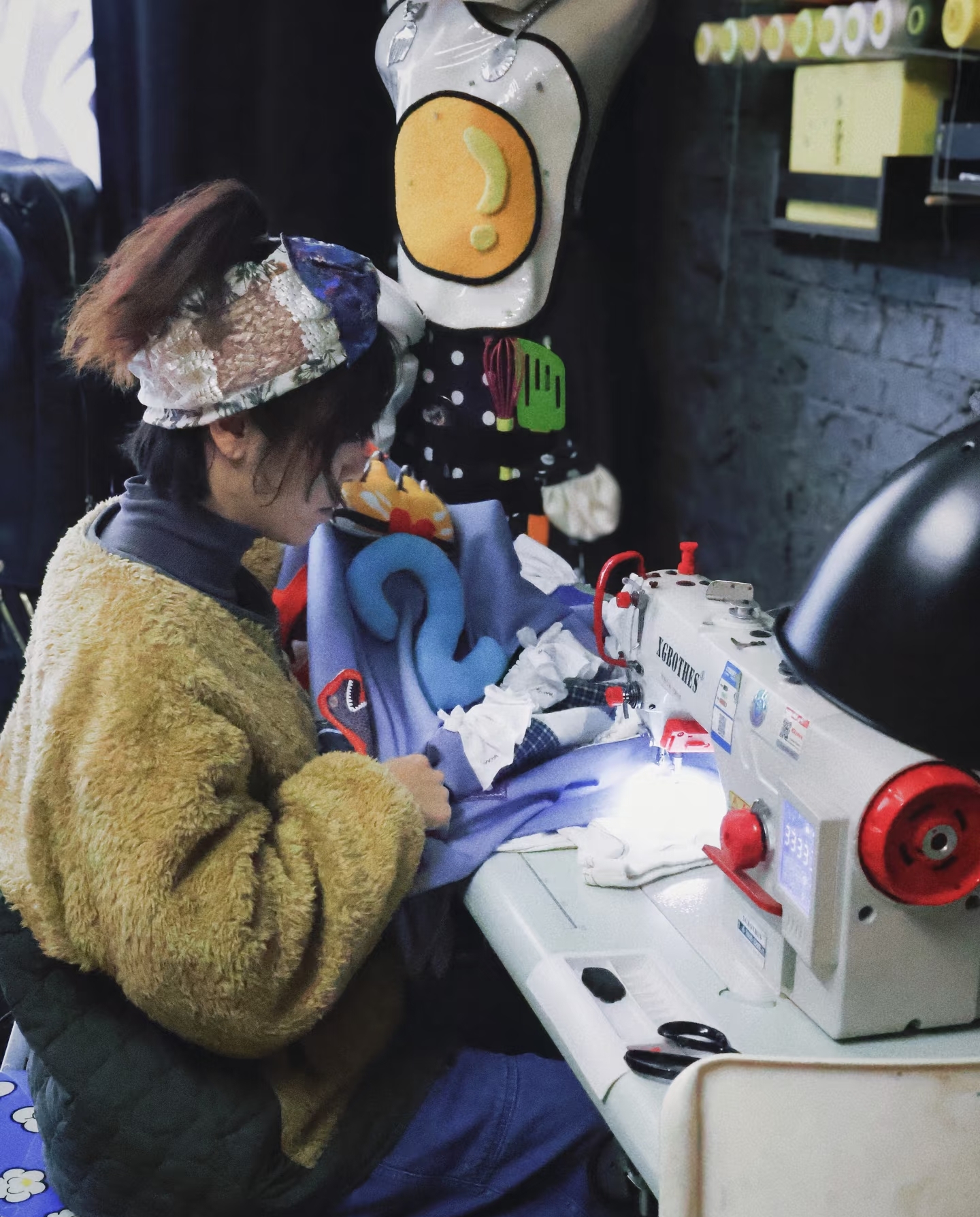她坐在缝纫机面前认认真真裁剪,一针一线皆出自自己的手,真的是太用心了。