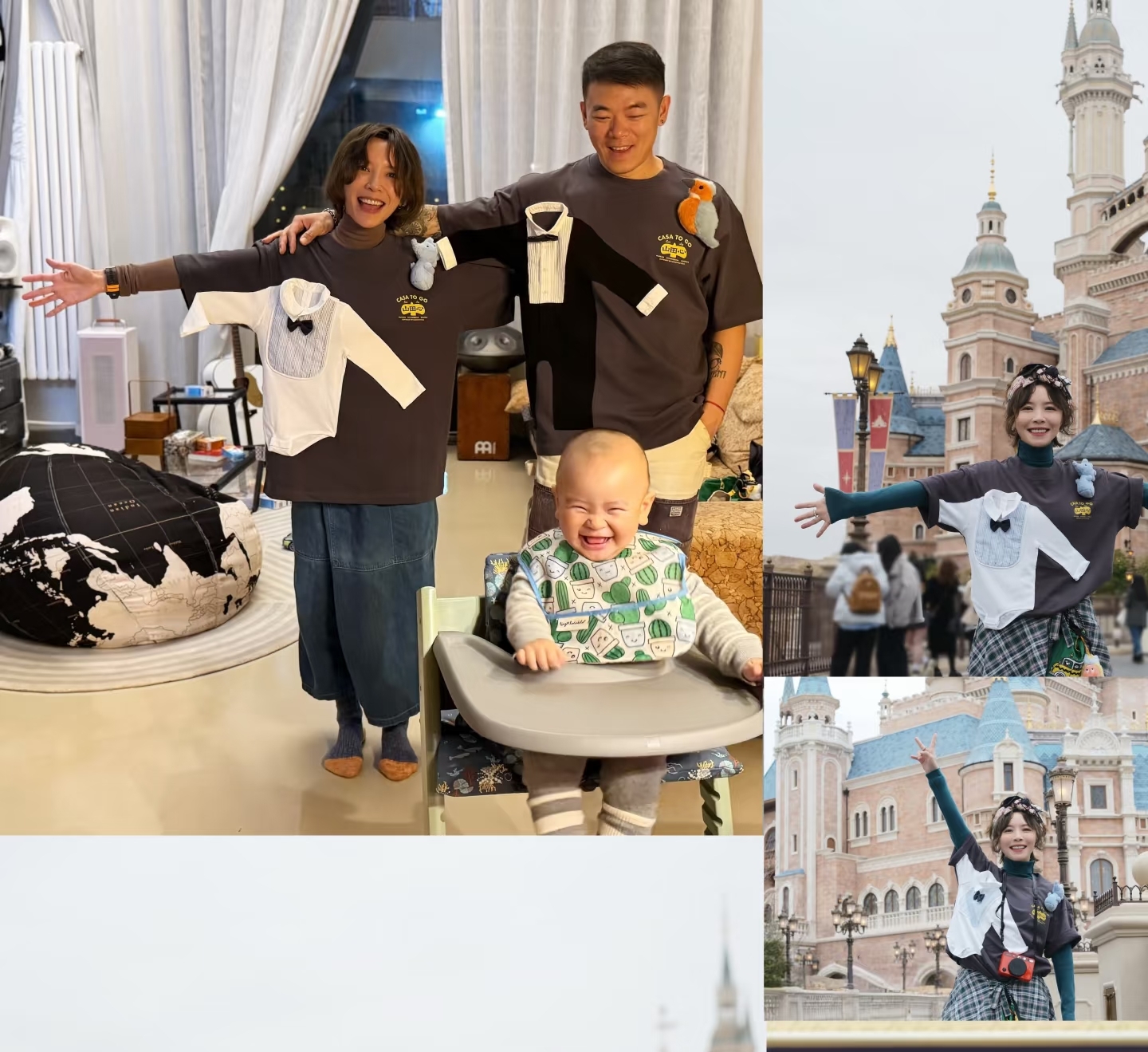 而且除了黄雅莉有之外,她还会给丈夫也做关于孩子的衣服,比如去年夫妻俩的改造情侣装就是把阿布的衣服缝在自己的衣服上,还把儿子喜欢的玩偶也镶在了肩膀上,这样抱着孩子的时候他就能看到自己喜欢的玩偶了。