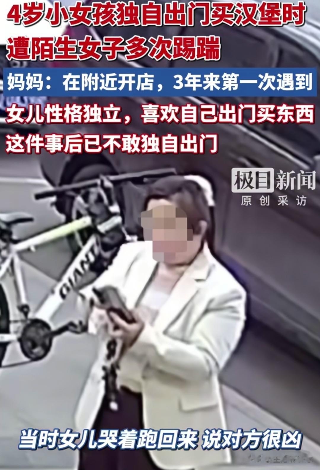 极目新闻:8.92 复制打开抖音,看看【极目新闻的作品】4岁小女孩独自出门买汉堡时遭陌生女子多次踢踹,妈妈... https://v.douyin.com/FSM52dBiEoY/ X@M.Jv Vyt:/ 07/14