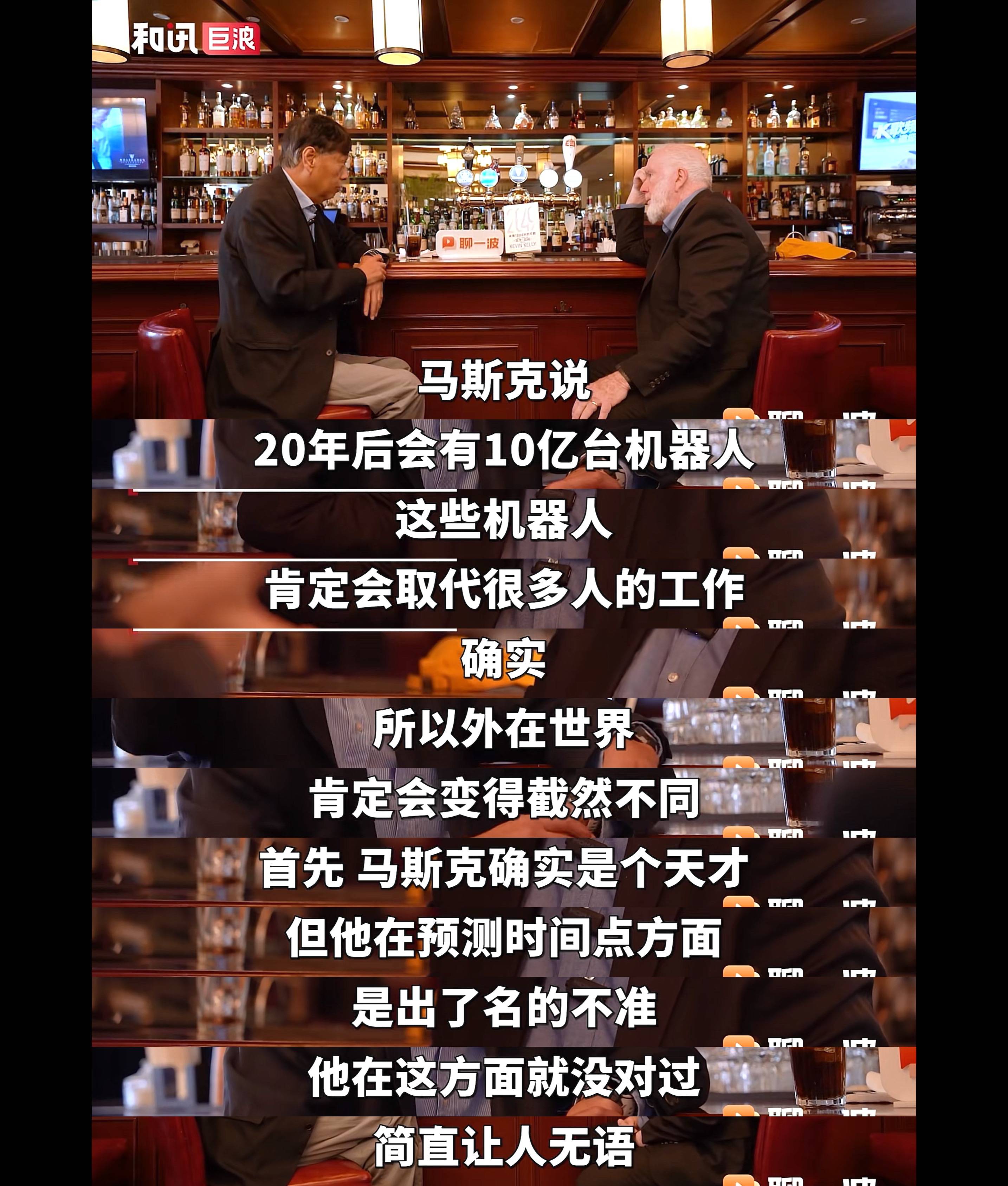 还有他在访谈里是这么评价马斯克那10亿机器人预测的:「这哥们大方向或许说的都对,但时间线上可就错得太离谱了」,就很有节目效果。