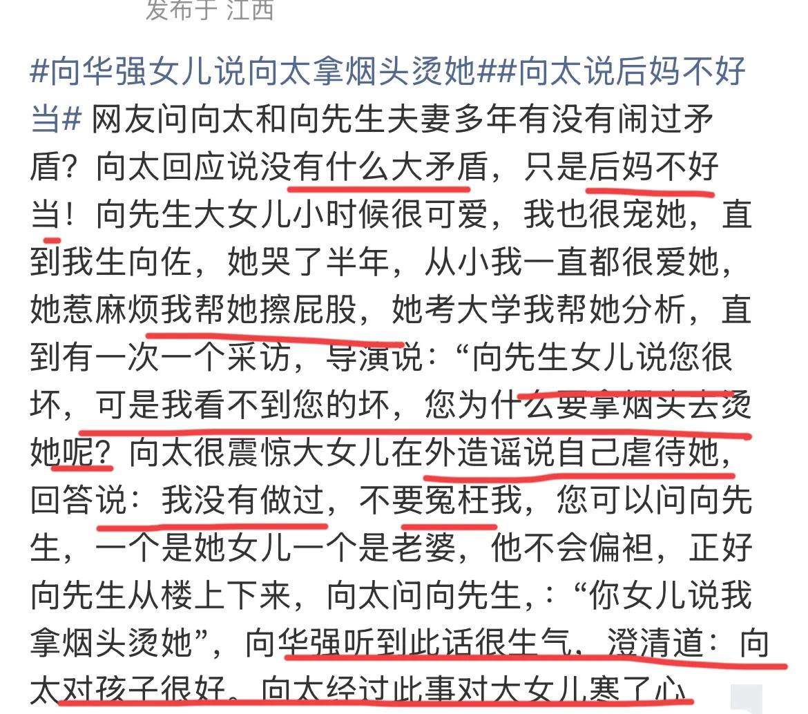 直到早些年前,向华强的大女儿向永恒(原名:向咏恒),在媒体面前披露继母向太曾用烟头烫她。
