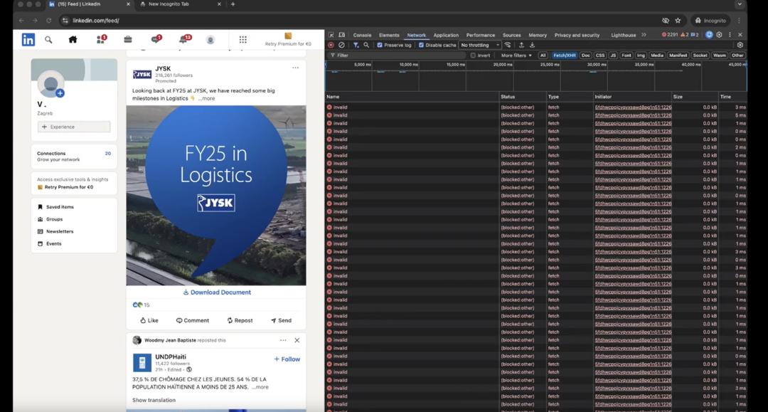 2026 年 3 月底,德国非营利组织 Fairlinked 发布了一份代号为“BrowserGate”的技术调查报告,核心指控非常直接:每当你访问领英官网,隐藏在网页中的 JavaScript 代码就会静默扫描你的浏览器,检测你安装了哪些扩展程序,然后将结果加密传回领英服务器及一家第三方网络安全公司。
