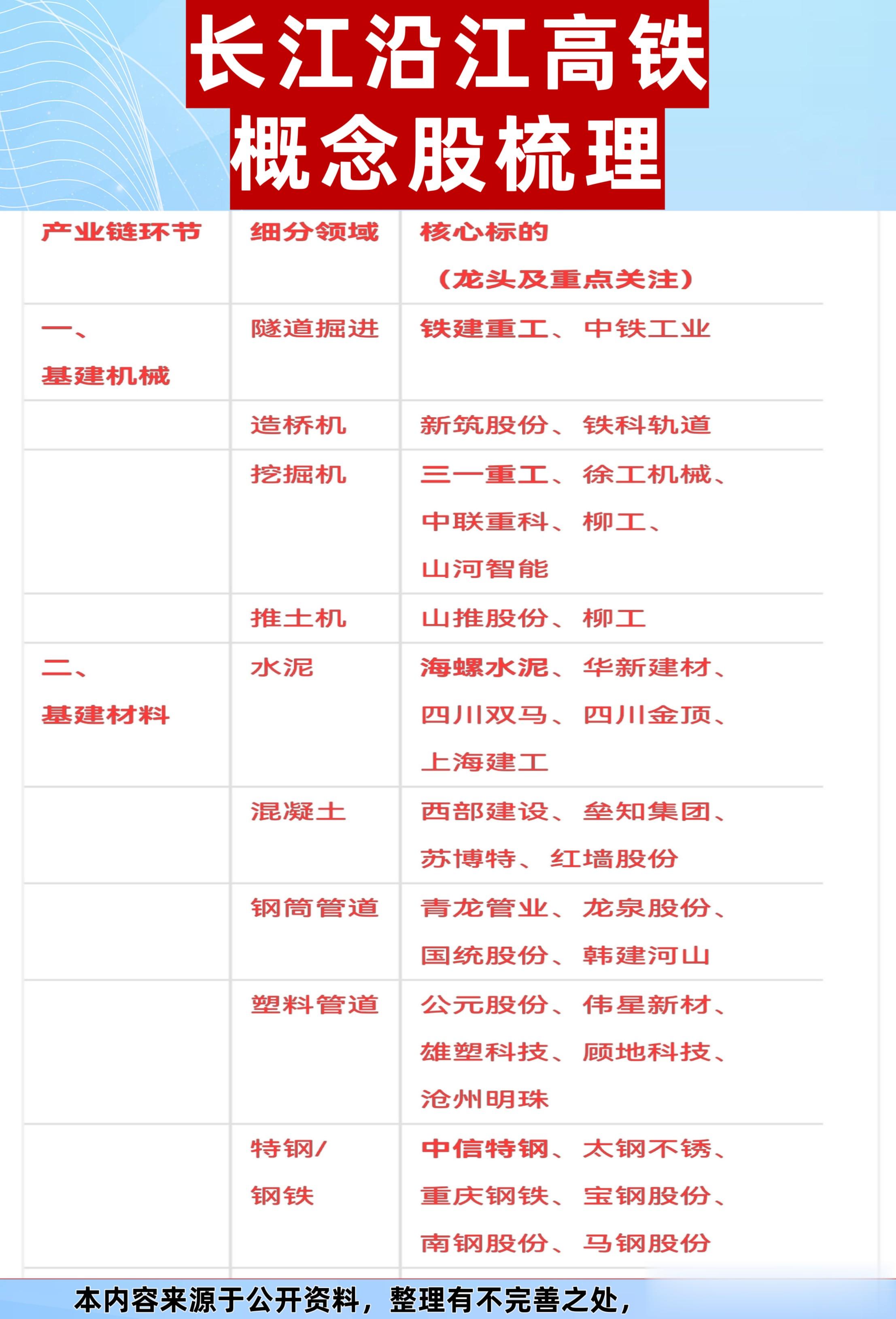 今天把沿江高铁全产业链标的整理得清清楚楚,每个细分龙头都列全了,整理不易,记得点赞收藏关注,一键三连!后续我会持续跟踪沿江高铁施工进度、订单落地情况,有新消息第一时间同步,我们一起把握这波基建产业红利!