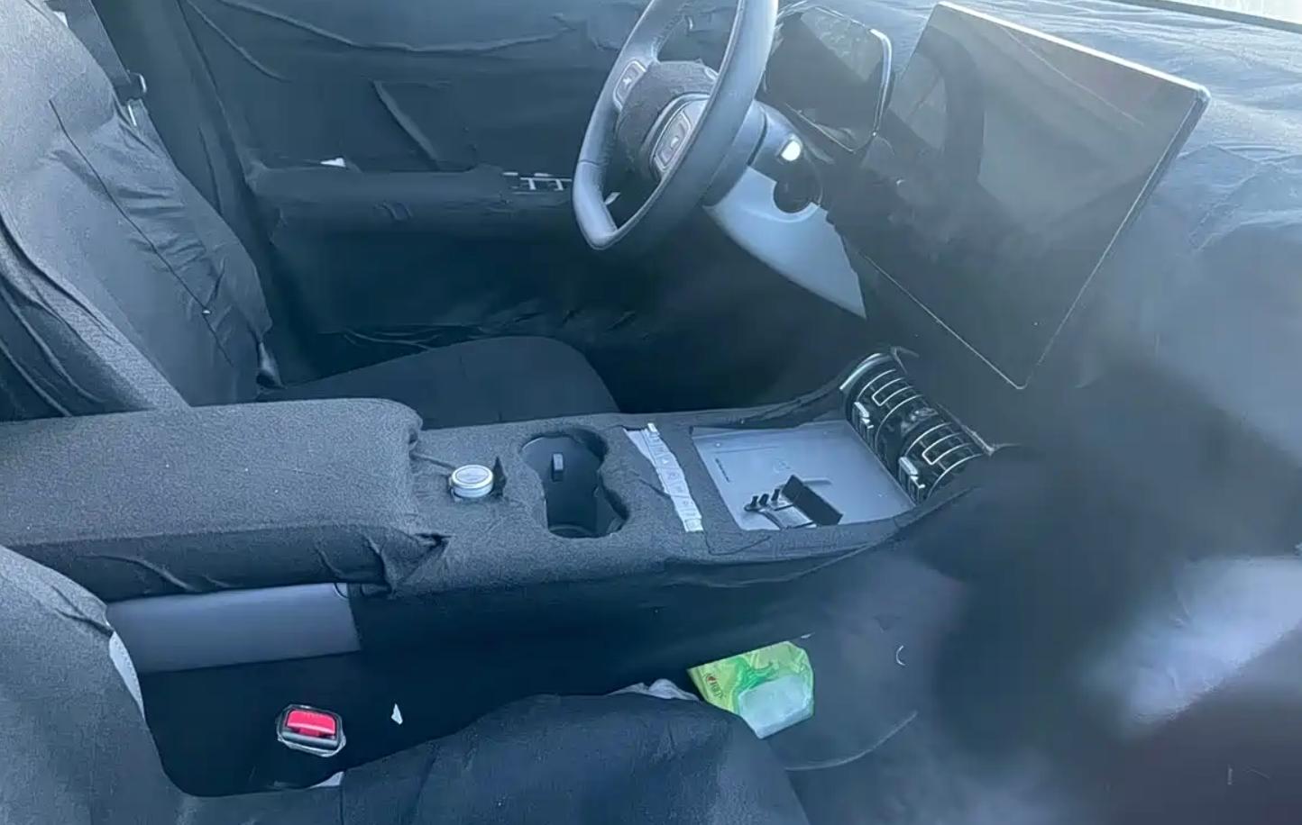 谍照显示,内饰部分第三代元PLUS换装全新样式方向盘,并采用怀挡设计,优化了中控台空间利用率。液晶仪表造型经过重新设计,尺寸进一步加大,搭配悬浮式中控屏。下方空调出风口造型保持简洁,配备手机无线充电面板及物理按键区域,同时有望搭载车载冰箱。车内门把手也调整为传统样式,实用性得以保障。