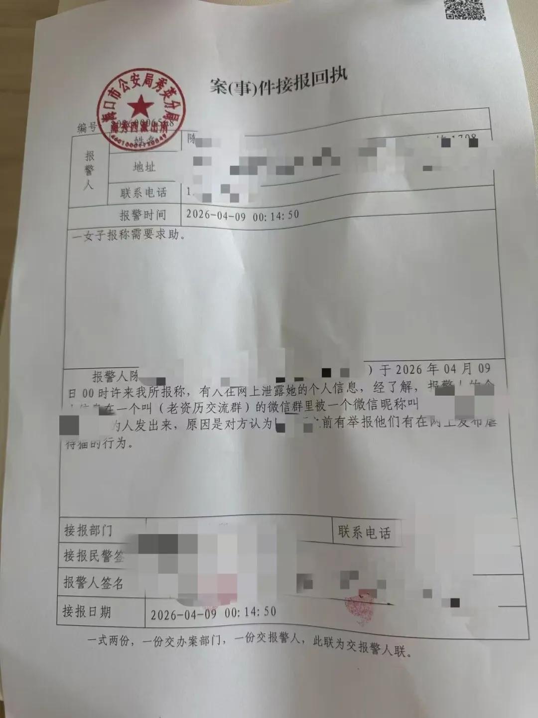 “我有看到那个群内的截图,他们就是把我的全家户籍,包括我父母、家里面80岁老人,他们的身份证号、地址、手机号,全部都给‘人肉’出来了。还有我的单位信息。”