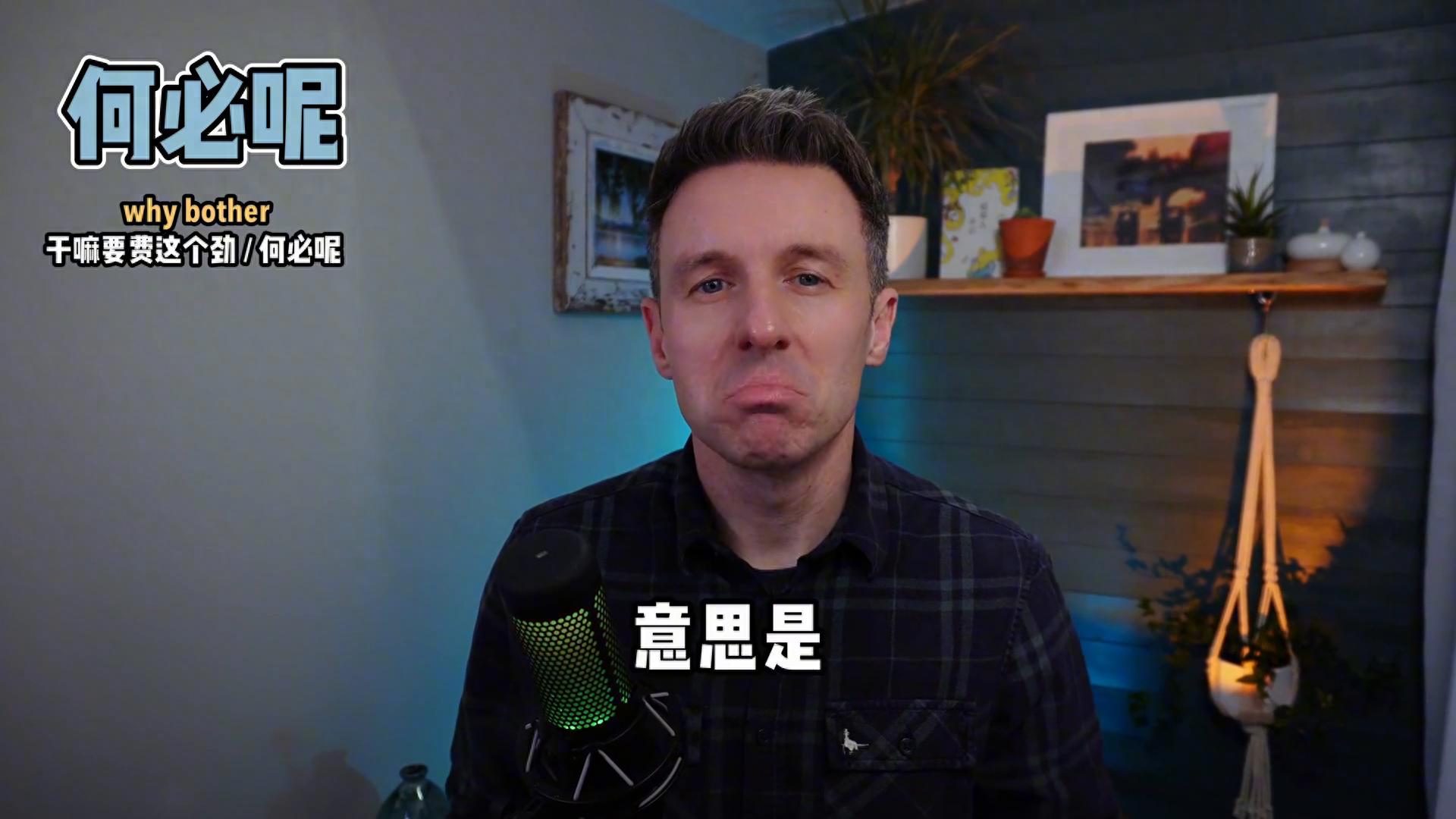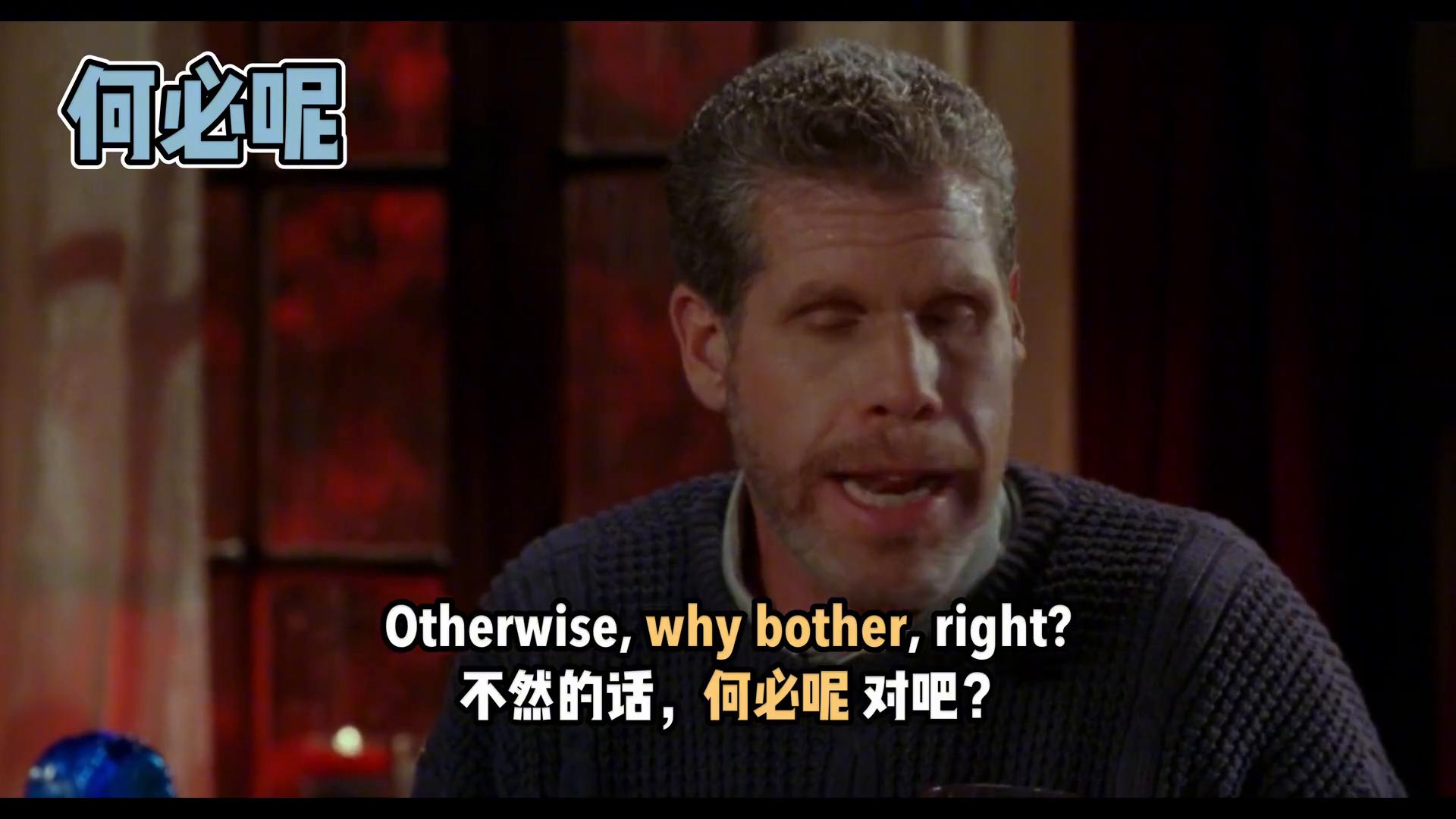 ·比如why bother?意思是,何必呢?干嘛要费这个劲,常用在你觉得这件事不值得做。
