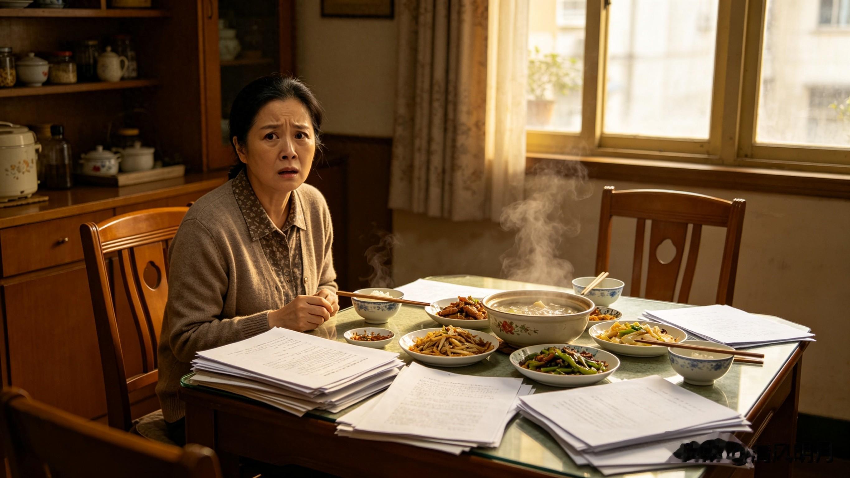 饭桌上,只剩下张女士一个人,和那十几页没人看的资料,以及一桌子还没怎么动过的菜。