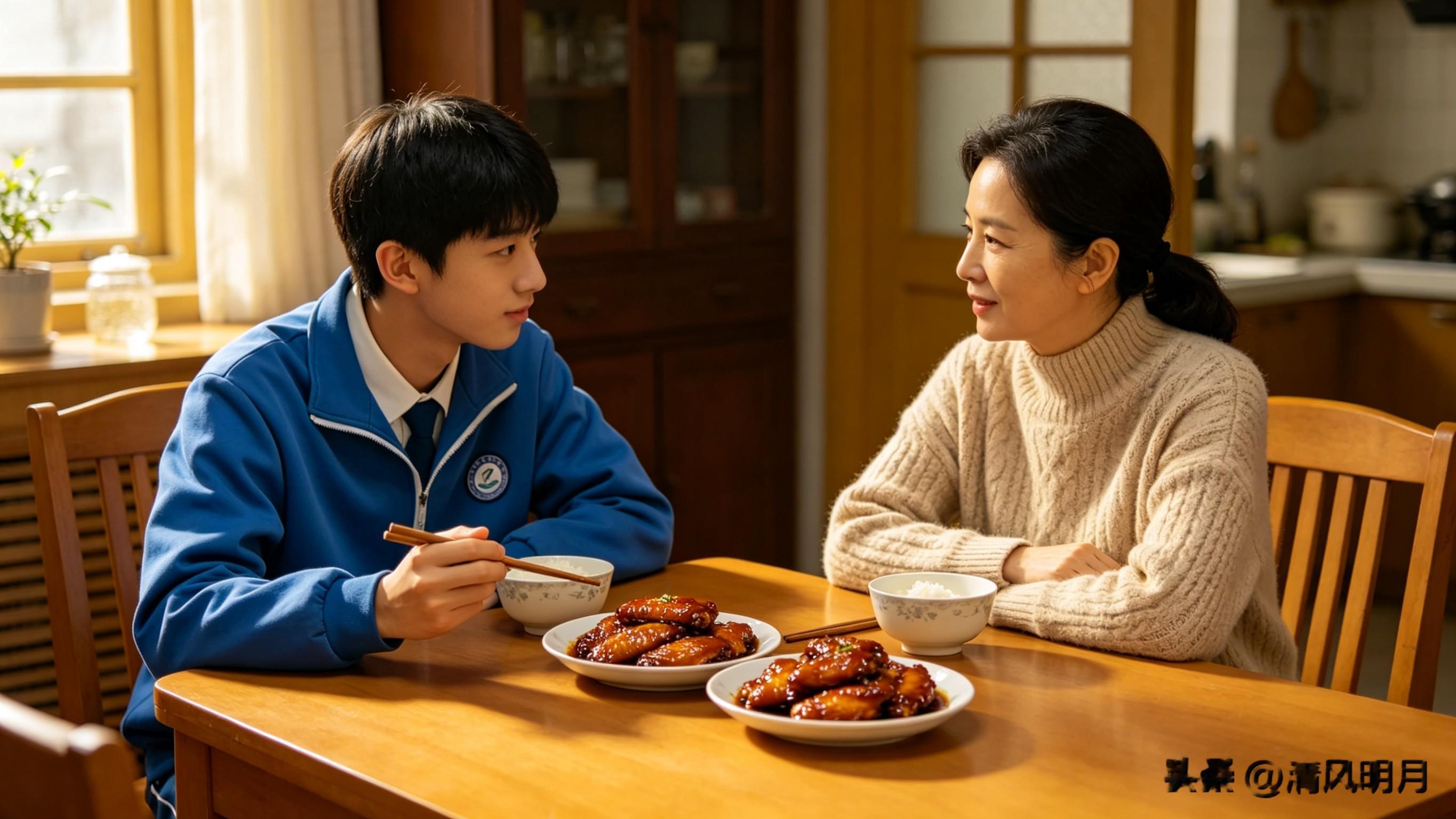 第二天,她做了一件很聪明的事。没有再提选科,而是做了小宇爱吃的可乐鸡翅。吃饭时,她说:
