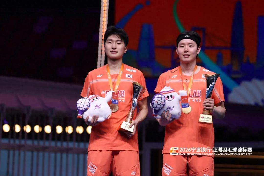 北京时间4月12日,2026亚洲羽毛球锦标赛男双决赛上演韩国德比。世界排名第一的金元昊/徐承宰以21比13、21比17直落两局战胜队友姜珉赫/奇东柱,夺得冠军,这是两人本赛季斩获的第三个单项赛冠军头衔。赛后,他们在采访中谈到了不败纪录、最大对手以及接下来的目标。