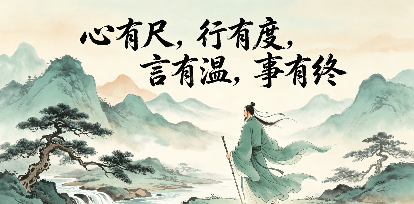 人生在世,从来不是随心所欲的漂泊,而是一场带着分寸的修行。真正通透的人,都懂得守住内心的准则,把控行事的边界,怀揣温柔的善意,秉持踏实的初心,做到心有尺,行有度,言有温,事有终。这四句处世箴言,藏着为人处世的顶级智慧,也是一生都要坚守的修行。