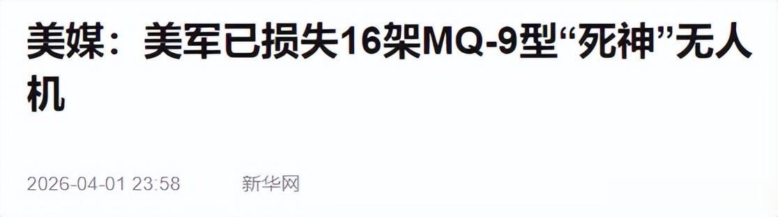 美媒:美军已损失16架MQ-9型“死神”无人机——新华网