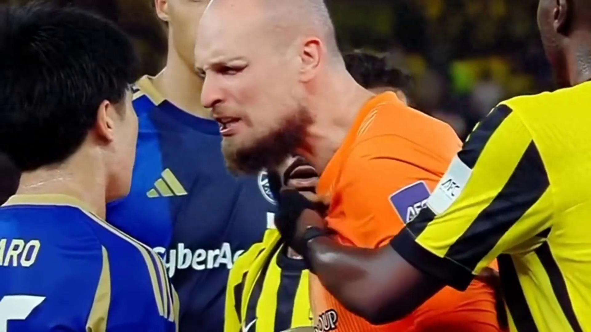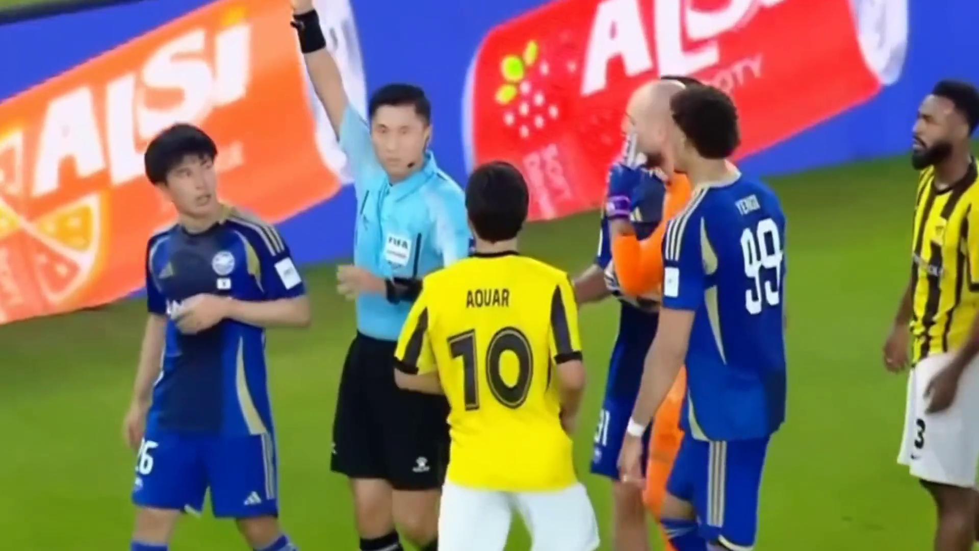 吉达联合球员认为对方球员故意踢人,纷纷向马宁表示抗议,应该出示红牌。从慢动作来看,日本球员确实有个多余的踢人动作,但是马宁坚持自己的判罚,从而引发了吉达联合球员的不满。