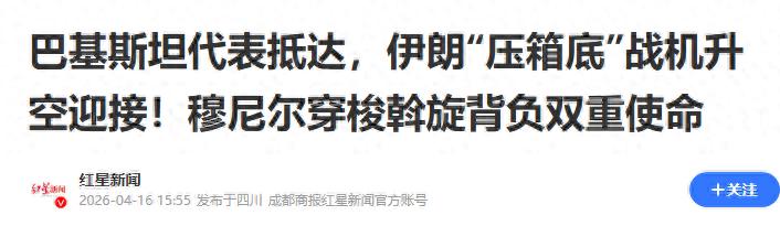 2026年4月15日,巴基斯坦陆军参谋长穆尼尔穿着军装,手里拎着那个分量十足的元帅权杖,浩浩荡荡地走下专机,一旁是伊朗外长阿拉格奇等着迎接,还有几架战机在天空盘旋为其“撑场面”。