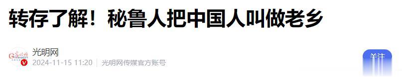 光明网:转存了解!秘鲁人把中国人叫做老乡 2024-11-15