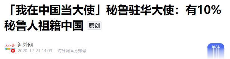 海外网:「我在中国当大使」秘鲁驻华大使:有10%秘鲁人祖籍中国 2020-12-21