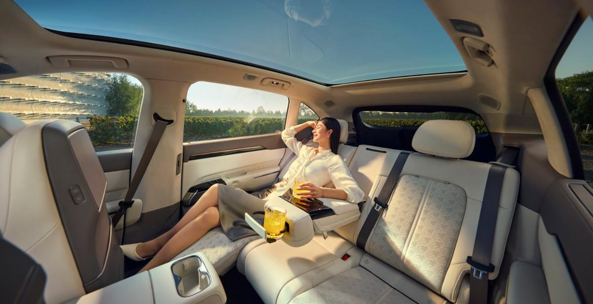 得益于83.34%的超高“得房率” ,极氪7X的后排腿部空间达到了1187mm,即便是身材高大的羽毛球选手也能轻松伸展双腿。后排配备的NAPPA全粒面头层真皮电动躺椅,支持通风、加热及多模式按摩功能,配合极氪魔毯空气悬架带来的如履平地的滤震表现,让运动员在转场途中能够快速放松紧绷的肌肉,恢复体能。