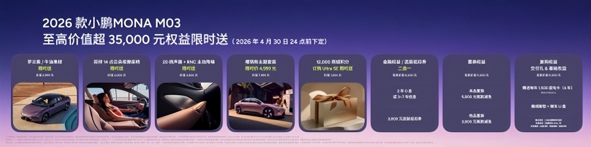 【2026年4月2日,广州】今日,2026款小鹏MONA M03正式上市。作为小鹏面向年轻用户打造的AI智能纯电轿跑,新车以“全方位对标20万级车型”为开发基准,在外观设计、智能科技、驾乘舒适与主被动安全等核心维度实现全面进化,致力于为年轻用户带来越级出众的用车体验。本次上市共推出6款版型,官方指导售价依次为:540长续航Plus 11.98万元、640超长续航Plus 12.98万元、510长续航Max 12.98万元、610超长续航Max 13.98万元、510长续航Ultra SE 14.18万元及610超长续航Ultra SE 15.18万元。品牌同步推出上市专属权益,即日起至2026年4月30日24点前下定2026款小鹏MONA M03,限时送至高价值超35,000元权益。