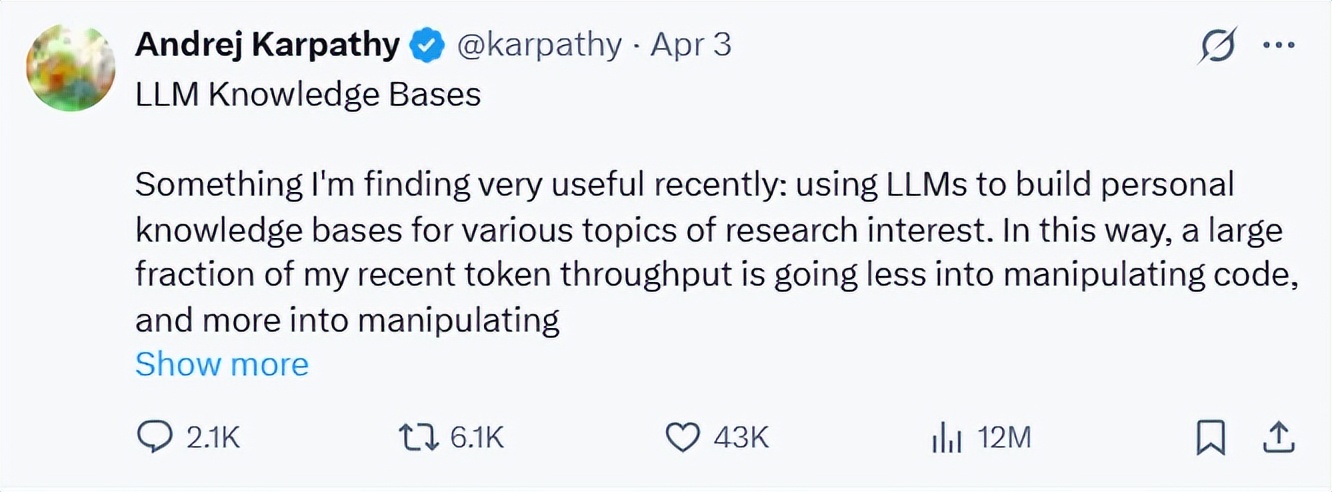 (来源:https://x.com/karpathy/status/2039805659525644595)