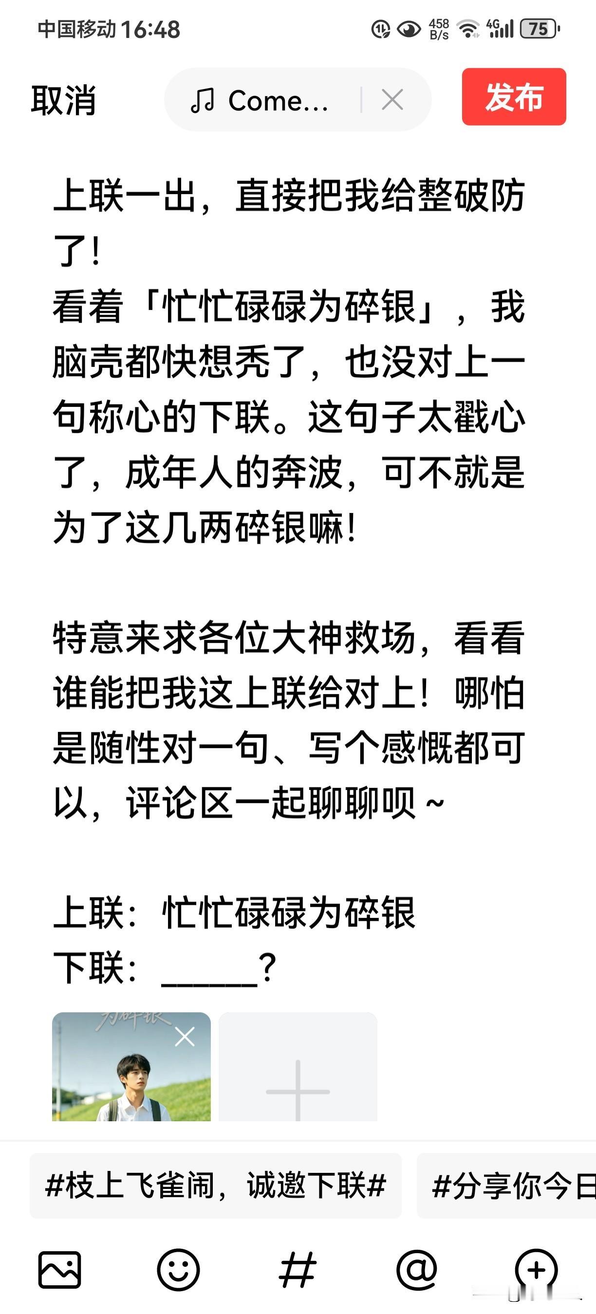为了这句满意的上联,真是琢磨了好久! 翻遍了江南烟雨的记忆,删了又改,终于磨出了